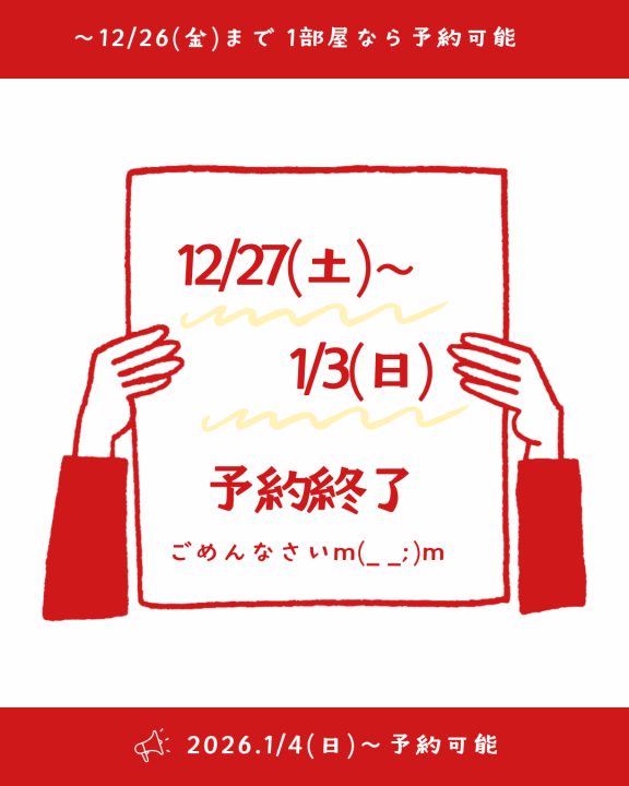 年末年始の予約は終了です
